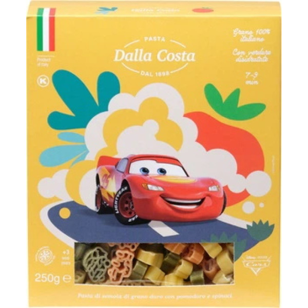 Макарони Dalla Costa Disney Cars — це яскраві фігурні макаронні вироби у формі персонажів із мультфільму Cars, які роблять процес прийому їжі більш цікавим для дітей. Виготовлені з якісної пшениці, мають приємний смак і добре тримають форму під час варіння.