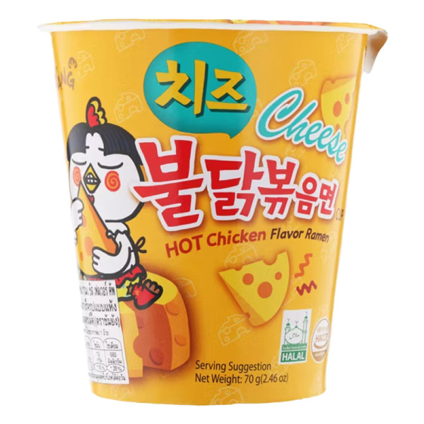 Рамен Buldak Ramen Острый Куриный Сыр в стакане – это вкусное сочетание фирменной жгучей лапши Samyang с нежными сливочно-творожными нотками.