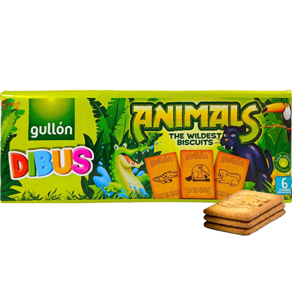 Оригинальное, увлекательное печенье Gullon Dibus Animals — сделано в форме небольших прямоугольников, на которых есть интересные рисунки разных животных. В связи с этим, печенье можно назвать не только вкусным и полезным, но еще и развивающим, благодаря которому дети смогут открыть для себя новые разновидности животных. Также это лакомство богато такими витаминами, как кальций и железо, и содержит высокоолеиновое подсолнечное масло. кальция), соль, эмульгатор (соевый лецитин) и разрыхлитель), краситель (обычная карамель), антиоксидант (метабисульфит натрия), ароматизаторы, витамины.