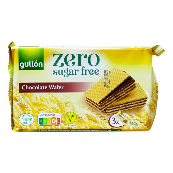 Вафлі без цукру GULLON ZERO Chocolate Wafer - ніжні хрусткі вафлі з шоколадним прошарком. Три шари шоколадного крему, розділені смачною вафлею з високим Підходять для вегетаріанців.