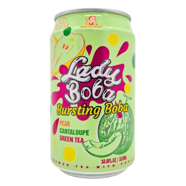 Lady Boba Bubble Tea Green Tea Pear Melon - знаменитий бульбашковий чай у зручній бляшанці. Грушево-динний варіант являє собою зелений чай із поєднанням соковитої груші та солодкої дині та додаванням молока, цукру та кульок тапіоки.