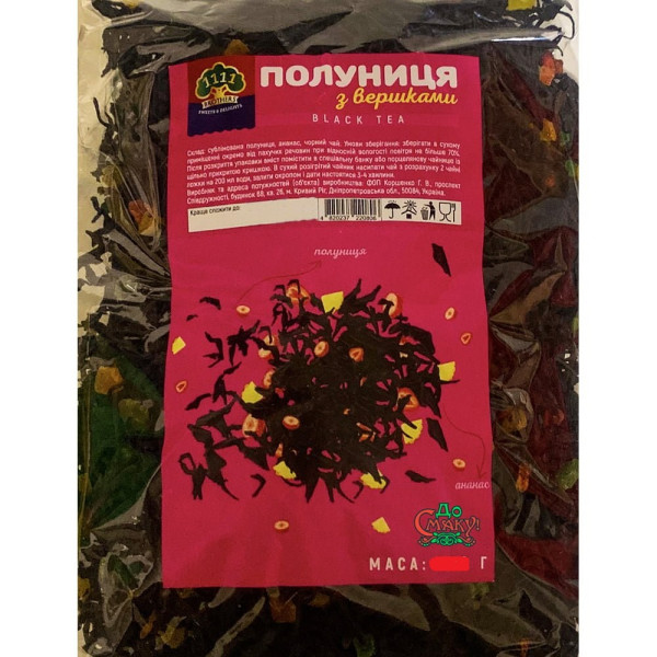 Склад: сублімована полуниця, ананас, чорний чай.