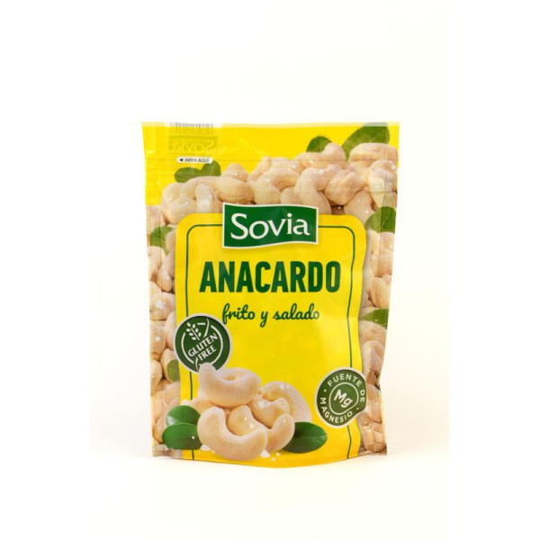 Смажені солоні горіхи кешью Sovia Anacardo є багатим джерелом магнію. Не містять глютену.