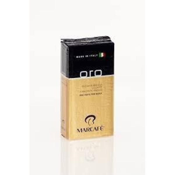 Цей високоякісний продукт створений із добірних зерен, майстерно обсмажених для досягнення гармонійного поєднання ароматичних нот. Marcafe Oro має насичений смак із багатим букетом, у якому відчуваються відтінки шоколаду, карамелі та легка горіхова насолода. Помірна кислотність і приємна гіркуватість роблять цей напій відмінним як для ранкового пробудження, так і післяобідньої паузи.