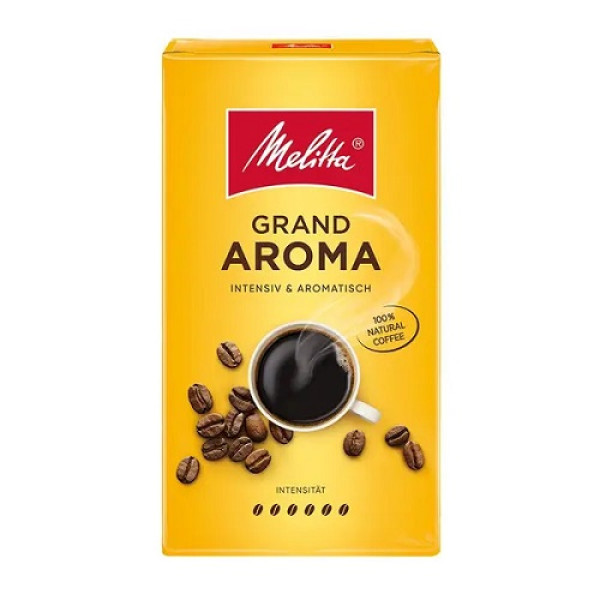 Melitta Grand Aroma - це натуральна мелена кава з тонким помелом зерна, завдяки якому цей напій підійде як для кавоварок, так і для заварювання в турці та гейзерних кавоварках.