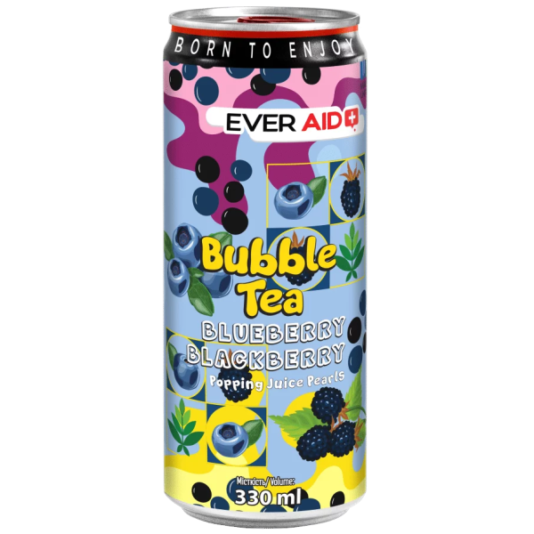 Ever Aid Bubble Tea Blueberry Blackberry - це чайний безалкогольний слабогазований напій з фруктовими соками, доповнений лопаючими кульками. Його свіжий та ароматний смак поєднує солодкість ягід з незвичайним ефектом лопаючих кульок, які додають особливу текстуру та насолоду при кожному ковтку.