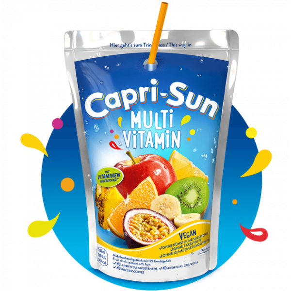 Улюблений дітлахами мультифруктовий сік Capri Sun є чудовим джерелом енергії та вітамінів впродовж цілого дня. Оригінальна фольгована упаковка напій захищає від негативного впливу сонця і тепла. Її зручно брати з собою, адже, завдяки ергономіці, вона не займає багато місця і може поміститися навіть у кишеню одягу.