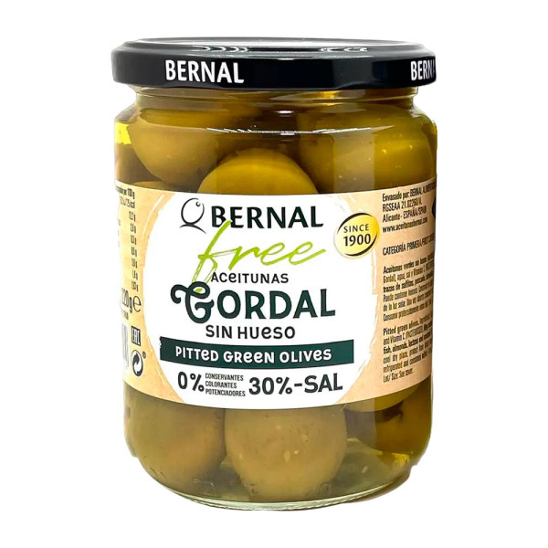 Оливки зелені гігант без кісточок солені, без глютену, без оцту, без консервантів, без барвників, без підсилювачів смаків. Bernal Gordal 30%Sal (Іспанія) Вага: 436г