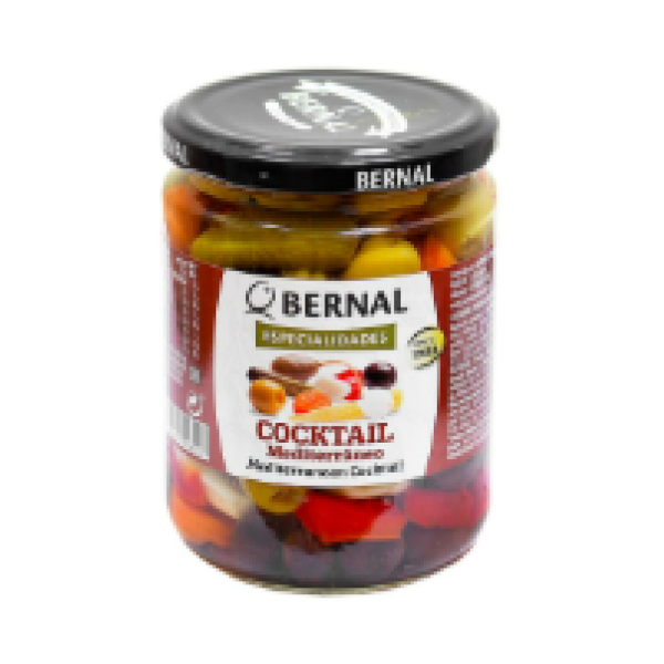 Bernal Especialidades Cocktail Mediterraneo - особливий середземноморський коктейль з зелених оливок без кісточки, чорних оливок ної та аскорбінової кислот. Не містить глютен.