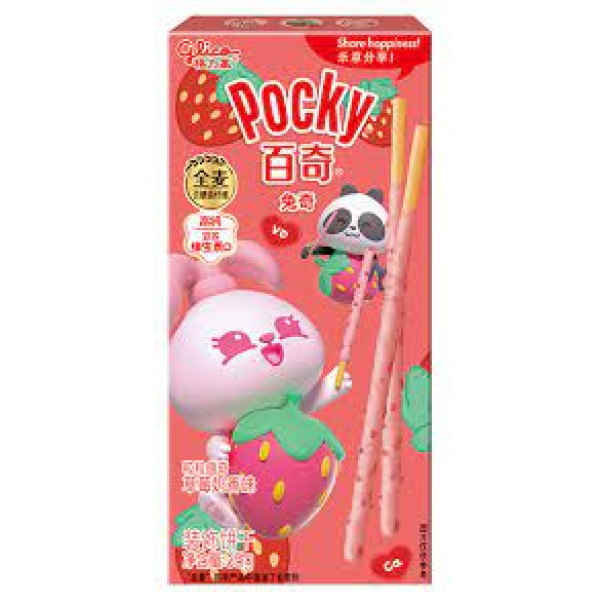 Хрусткі бісквітні палички в ніжній глазурі зі смаком полуничного молока та шматочками полуничного печива. Ідеальний солодкий перекус у компактній упаковці з милим кроликом.