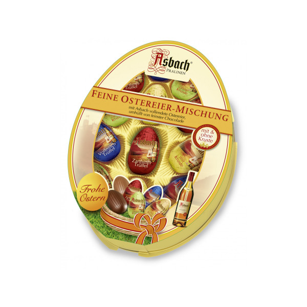 Відкрийте для себе не просто праліне, а 12 маленьких емоційних подорожей з Asbach Pralinen Feine Ostereier Mischung 12s 175g. Це не просто великодні яйця, а 12 миттєвостей, де легендарний коньяк Asbach розкриває свою душу в гармонії з різноманітними шоколадними почуттями.
