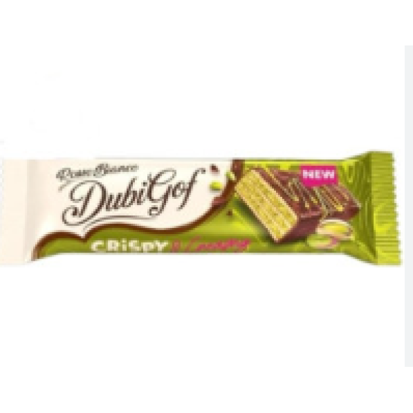 Дубайський вафельний батончик Rosso Bianco DubiGof має унікальний смак, що поєднує хрусткі вафлі, наповнені смачним фісташковим кремом. Дозвольте собі насолоджуватися чудовим смаком у повсякденному житті. З вафлею Rosso Bianco DubiGof ви підсолодите свою перерву протягом дня. Чудово підходить також для маленького перекусу, коли ви в дорозі. Для ваших дітей як перекус у школі. Уже з першого укусу вафля DubiGof завоює ваші серця своїм неймовірно хрустким та кремовим смаком.