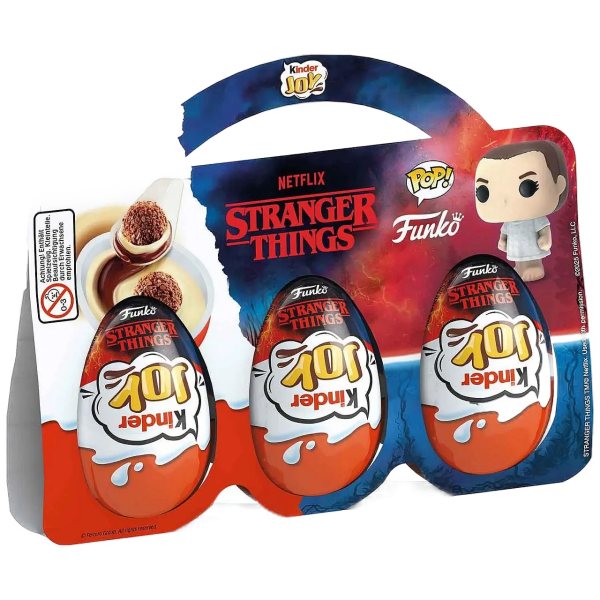 Кіндер Джой Дуже Дивні Дива Kinder Joy Funko Stranger Things — це десерт з хрусткими кульками та какао-молочним кремом і колекційна іграшка за мотивами культового серіалу Netflix «Stranger Things».