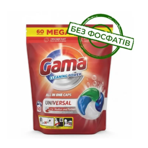 Капсули для прання Gama Cleaning Power 4в1 Universal 60 шт