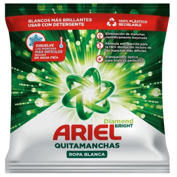 Ariel Stain Remover – німецького походження засіб для виведення плям з формулою активного кисню, завдяки чому помітний ефект досягнемо після першого ж прання. Порошок заснований на унікальних інгредієнтах, які видаляють навіть стійкі плями від жиру та інших плям від продуктів харчування та напоїв. Він видаляє як свіжі плями, так і засохші. Порошок можна використовувати з іншими засобами для прання. Продукт гарантує збереження ідеальних результатів за температури від 30°C. Ariel не пошкоджує тканини, дбаючи про їхні волокна під час прання. Завдяки інноваційній формулі всі кольори залишаються незмінними і зберігають свої оригінальні відтінки. Продукт також підходить для вовни та шовку.