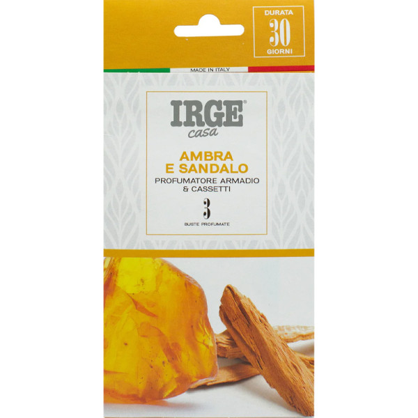 Ароматизатор для шафи Irge Ambra & Sandalo в пластинках 3 шт – секрет підтримки свіжості у кожному куточку, який надає речам густого тягучого аромату сандалу. Упаковка містить 3 саше, заповнені ароматизованими гранулами, які прибирають неприємні запахи та наповнюють простір ніжним ароматом. Ідеально підходить для ароматизації закритих просторів, таких як шафи, ящики з білизною, сумки та валізи. Засіб ефективно нейтралізує неприємні запахи та допомагає зберегти свіжість ваших речей.
