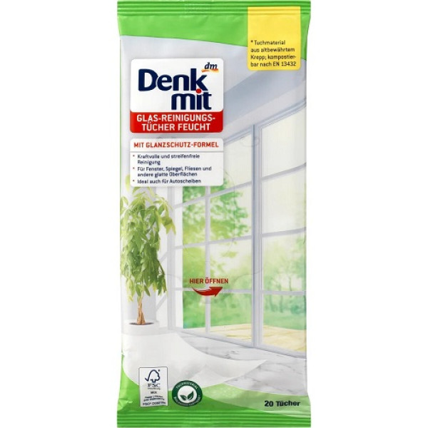 Серветки вологі Denkmit для очищення скла 20 шт